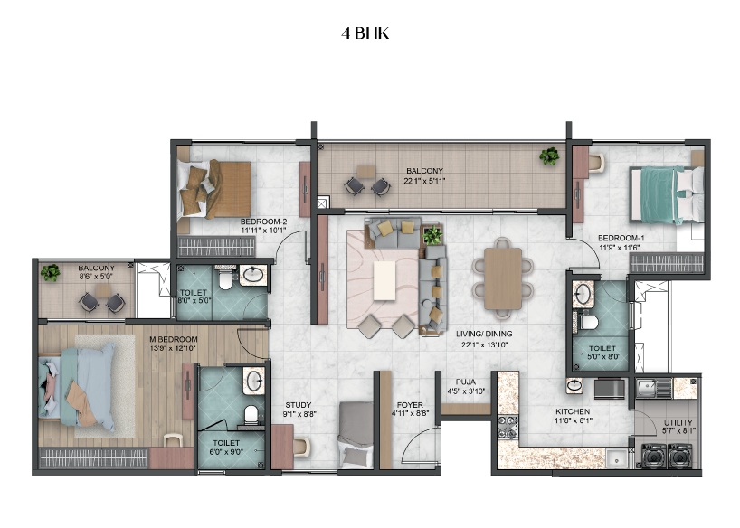 | 4 BHK Grand | 2260 - 2295 Sq.Ft. | ₹ 3.16 Cr* Onwards |